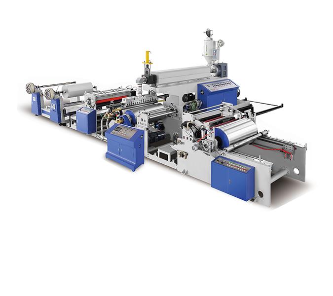 单面淋膜机以LDPE、LLDPE、PP、EVA、EAA等涂覆级淋膜树脂为原料,可对纸张,无纺布,编织袋等产品进行单面淋膜。