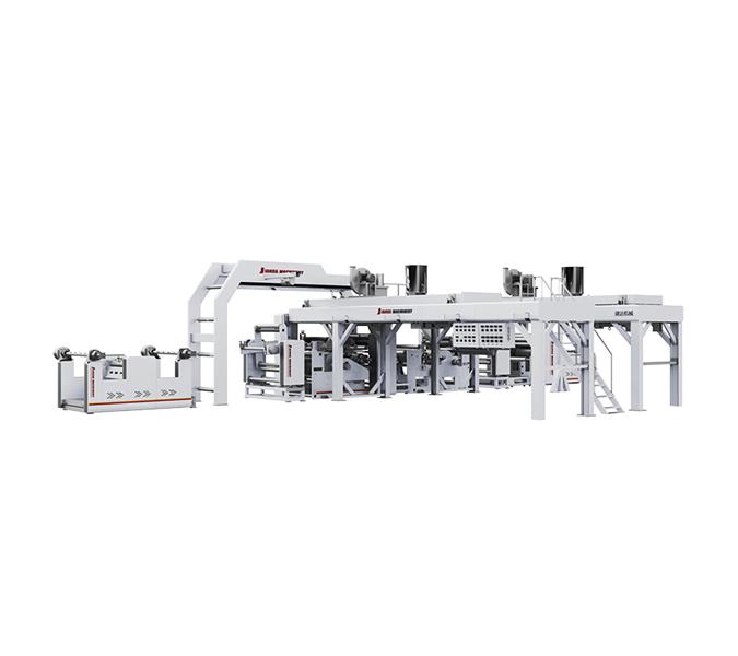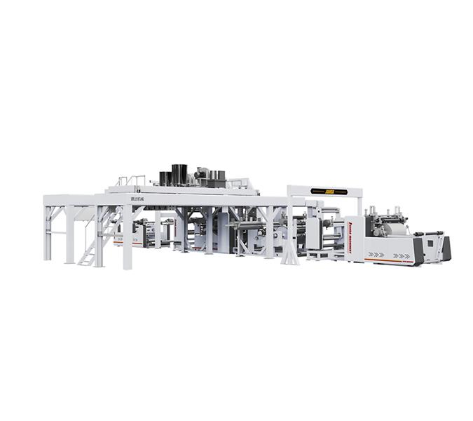 本生产线为高速挤出复合生产线,线速度可达到180m/min,适用干LDPE、PP等涂复级涂膜树脂, 淋膜编织袋、无纺布等为基材的复合生产。广泛应用于药用装膜,食品包装膜,文印办公包装,工程建筑包装及其他复合软包装材料领域等,主要用于无纺布淋膜。
