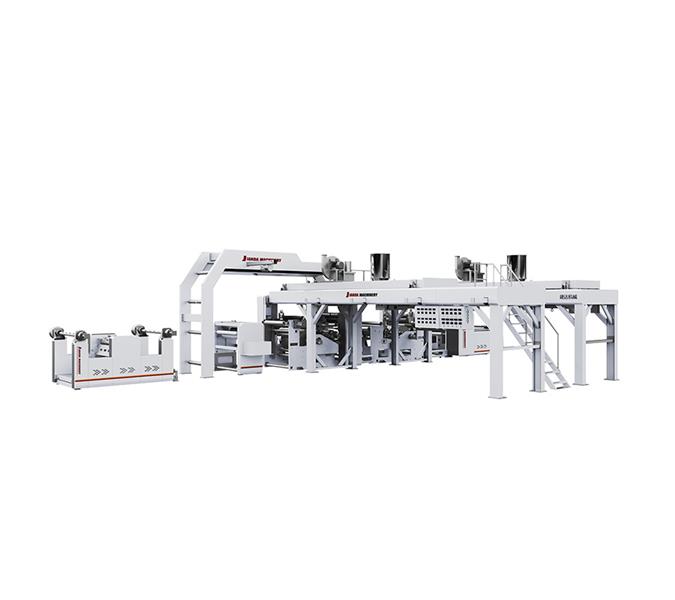 本生产线为高速挤出复合生产线,线速度可达到180m/min,适用干LDPE、PP等涂复级涂膜树脂, 淋膜纸张铝箔、无纺布等为基材的复合生产。广泛应用于药用装膜,食品包装膜,文印办公包装,工程建筑包装及其他复合软包装材料领域等。